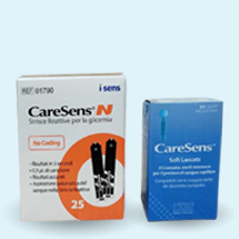 CareSens N effettua il test della glicemia in soli 5 secondi con un piccolo campione di sangue, è possibile impostare fino a 3 promemoria giornalieri e contrassegnare i valori prima e dopo il pasto.